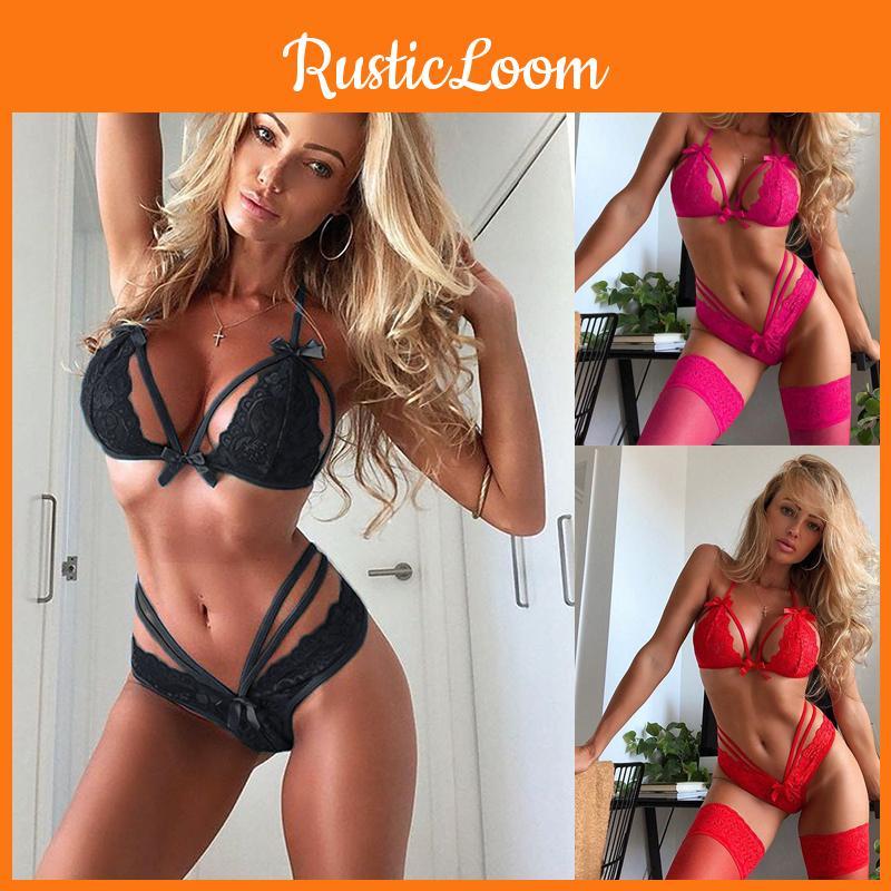 Elegant Women Sexy Lingerie Nightwear Dress Babydoll G-string Lace Bra Set For Romantic Evenings
