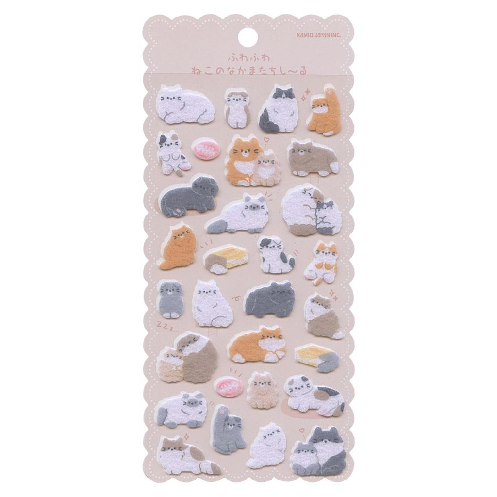 "Fluffy XX Friends Stickers" series. Various animals are made into stickers made of soft and fluffy felt material. You can collect your favorite animals and enjoy decorating them. Size: Height = 200mm, Width = 95mm, Thickness = 1mm. Illustration. Cover pattern: Cat.