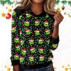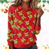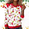Damenmode Weihnachts-Print Revers Langarm Lässiges Rundhals-T-Shirt Top