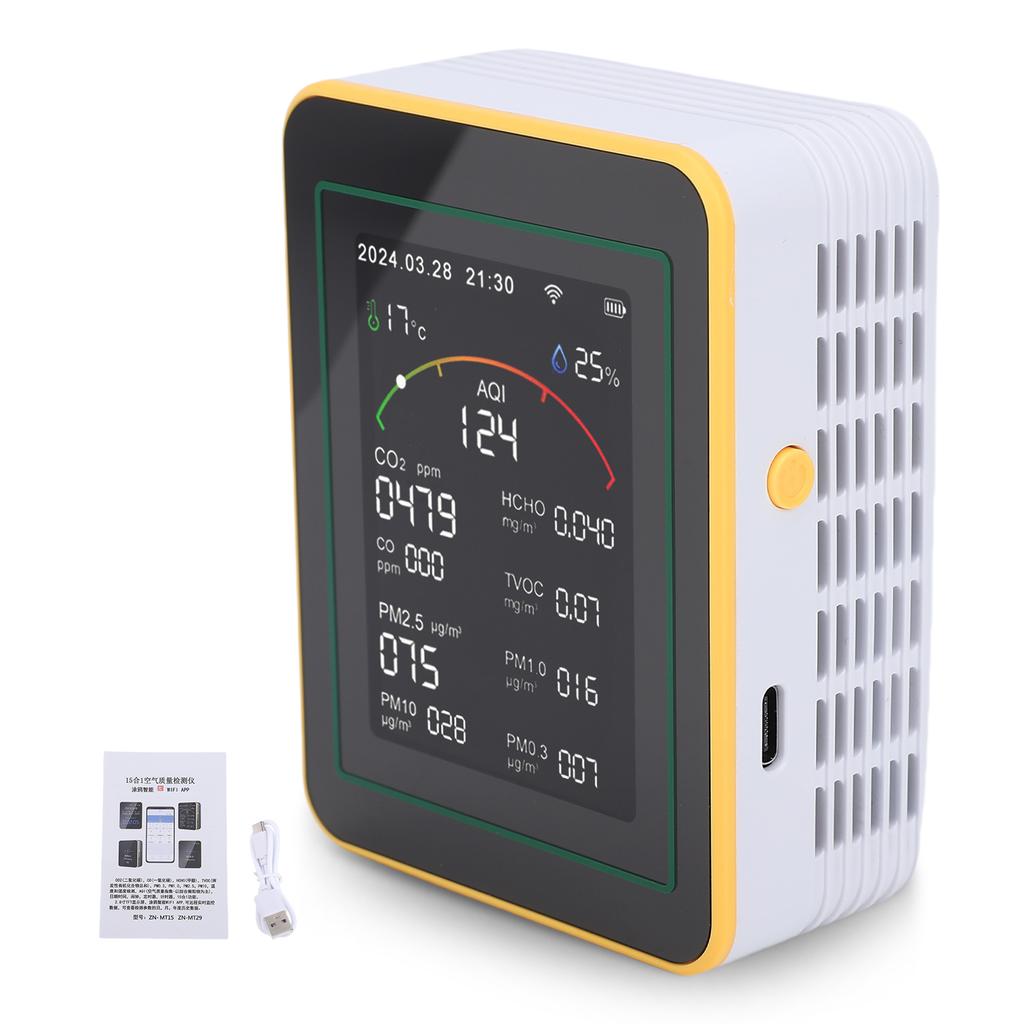 Air Quality Monitor 15-in-1 WiFi Air Detector with Color LCD Screen for Tuya Smart Detects PM2.5 PM10 CO2 TVOC Temp Humidity