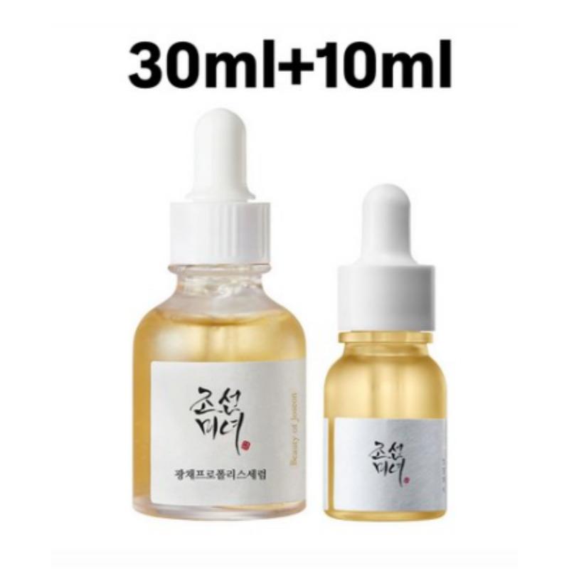A nourishing Korean-style serum designed to deliver deep hydration, boost radiance, and calm skin — ideal for dry, dull, or uneven complexions. The formula centers around propolis extract, well-known for its antioxidant and soothing properties, combined with brightening and moisture-supporting ingredients to give skin a healthy, luminous glow. The texture is slightly viscous and honey-like, yet absorbs quickly without stickiness, leaving skin soft and dewy. Comes in a standard 30 ml bottle plus a 10 ml travel-size add-on — perfect for everyday use or on-the-go skincare.