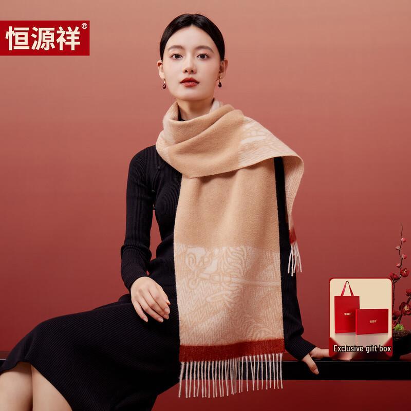 Hengyuanxiang Women's 100% Cashmere Jacquard Scarf