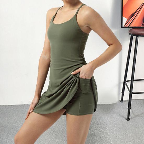 Extremer Komfort: Dieses Sportkleid mit integrierten Shorts ist aus weichem, atmungsaktivem und dehnbarem Stoff gefertigt und schmiegt sich sanft an Ihre Körperkurven, während es eine dezente Bauchkontrolle bietet.. Erleben Sie unvergleichlichen Komfort, egal ob Sie trainieren oder Freizeitaktivitäten genießen.