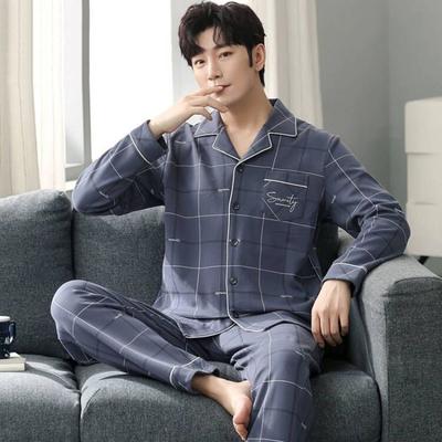 Herren Baumwoll Langarm Pyjama - Frühling bis Winter, Übergröße, Stilvolle Jugend-Homewear