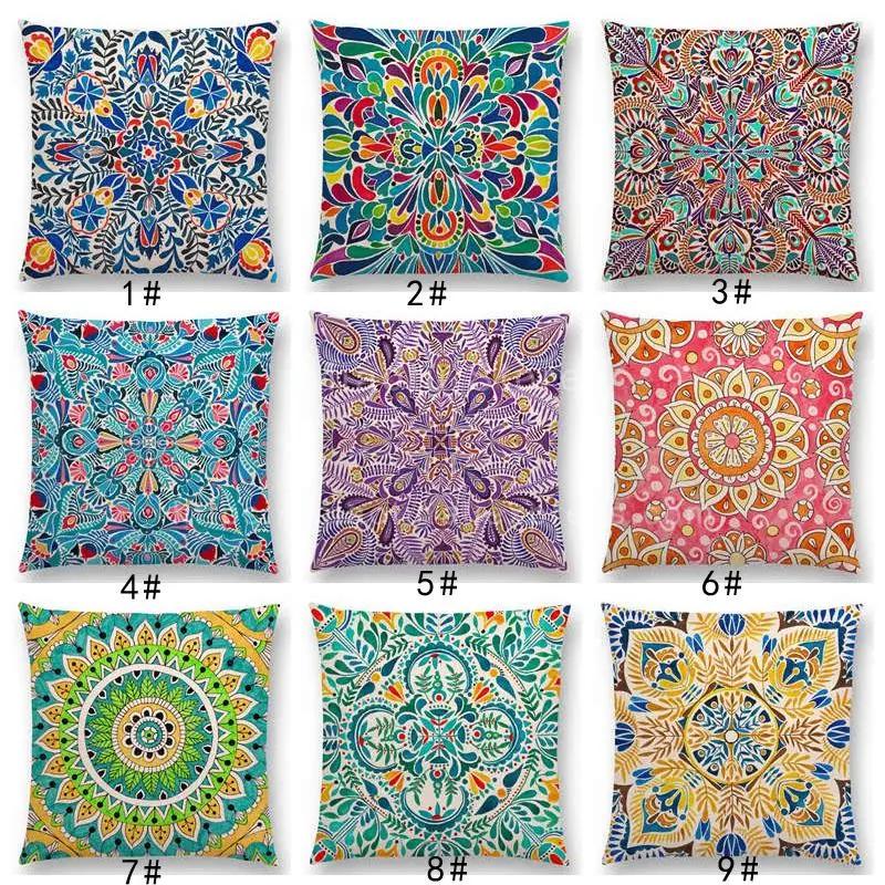 Neueste Boho Bunte Blumen Kissenbezug Rosa Regenbogen Lebhaft Floral Mandalas Musterdesign Begeisterung Drucke Kissenbezug