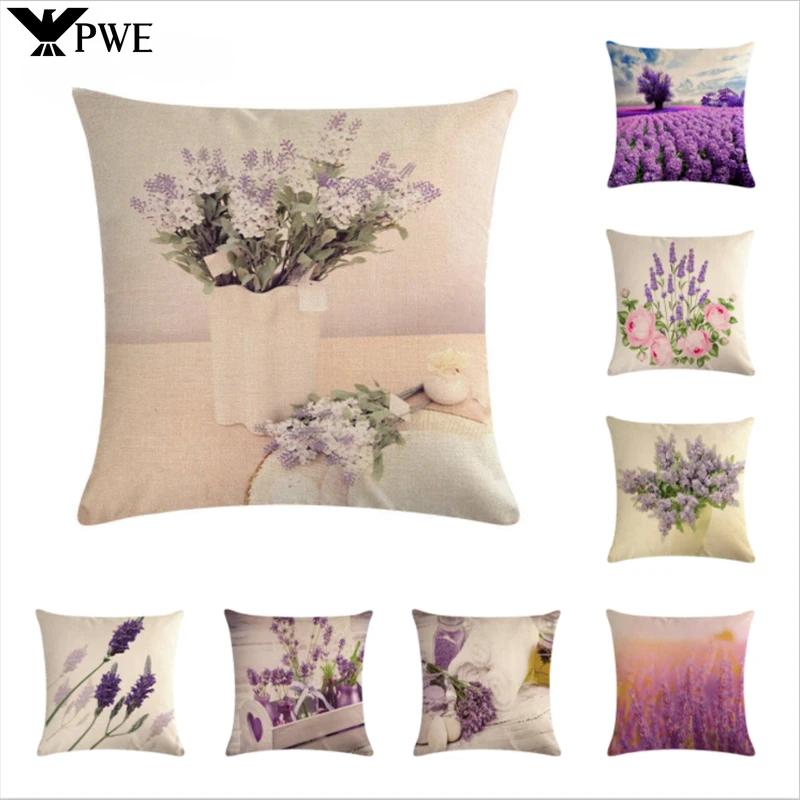 Schönes Lavendelmuster Leinen Überwurf Kissenbezug Auto Wohnzimmer Schlafzimmer Sofa Dekorative Kissenhülle 45*45cm
