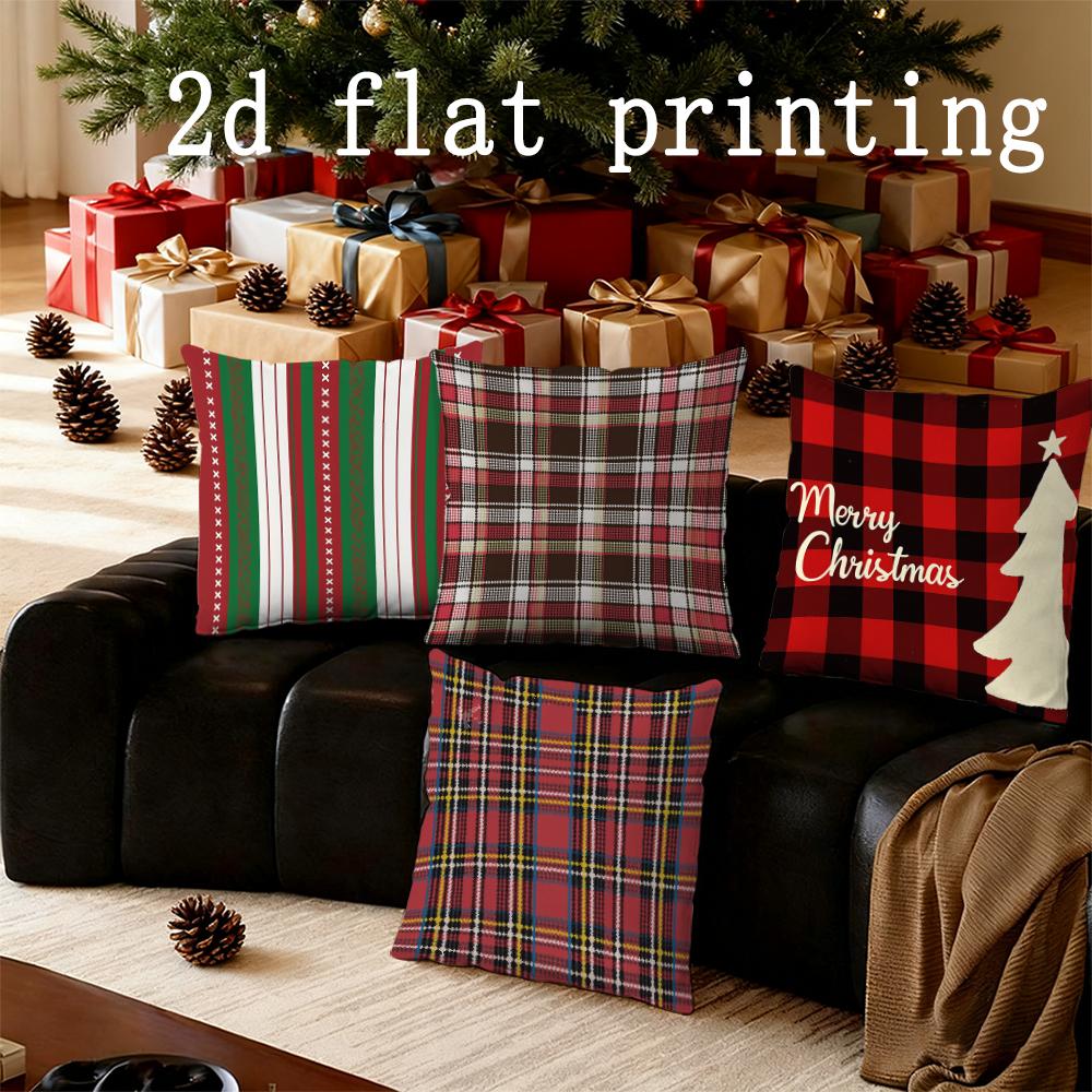 Wohndekor Weihnachten Karomuster & Fröhlicher Baum Muster Kissen Muster Kissenbezug Geeignet für Sofa Schlafzimmer Auto Kissenbezug