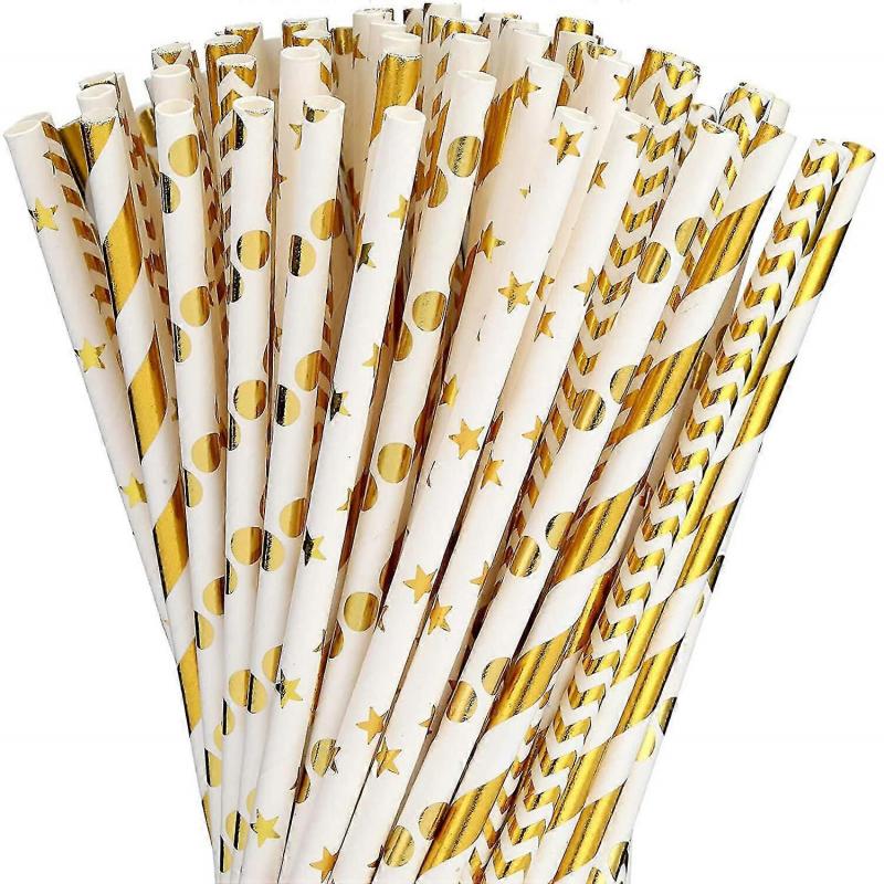 Paper Straws For Drinking, Disposable Biodegradable Cocktail Straws, Perfect For Birthday, Party Supplies , Baby Shower(gold, 100pcs/pack)