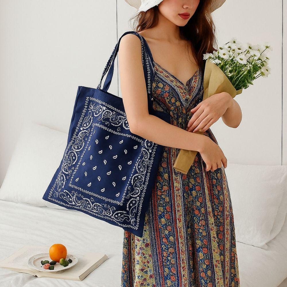 Printed Ethnic Style Shoulder Bag Retro Women's Handbag Casual Canvas Tote Bag Travel