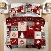 3pcs Down Elk Snowflake Christmas Theme Square Grid Quilt Cover Set Soft Microfiber Checkered Bedding Bedroom Decor