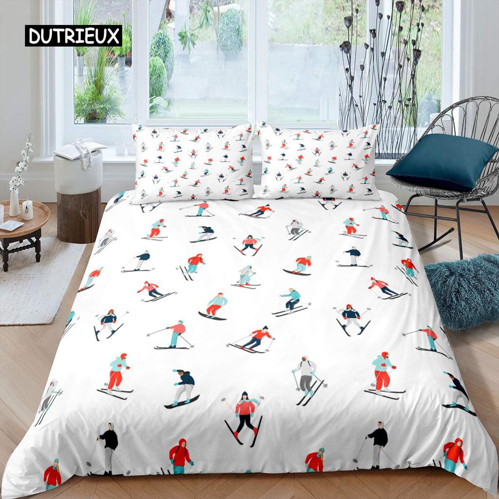 Ski-Bettbezug-Set, Cartoon-Ski-Bettwäsche-Set, Sport-Thema, Bettbezug, Extremsport-Design, Queen- und King-Size-Bettbezug