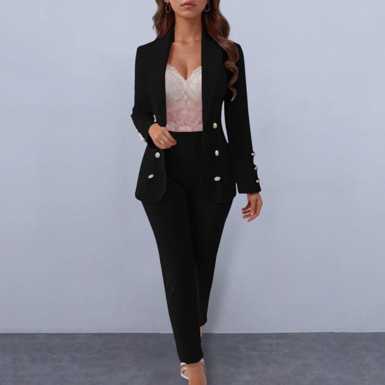 Damen Hosenanzug Set Zweireihiger Blazer 2-teiliges Business-Outfit Damen Büro Arbeitsjacke und Hosen Set