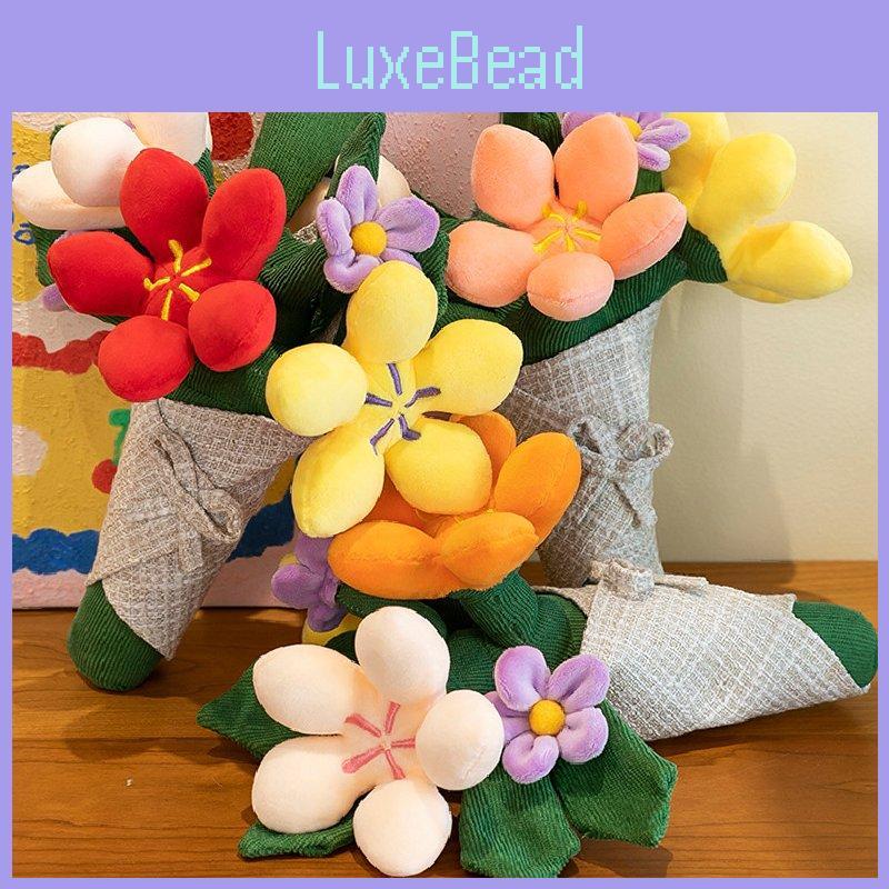 Niedlicher Plüschtier-Bär mit wunderschönem Blumenarrangement in Orange-, Rosa- und Rottönen