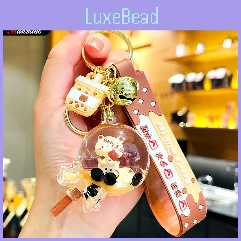 Stilvoller Acryl-Bären-Schlüsselanhänger mit flüssigem, schwebendem Milchtee-Design für Geschenke