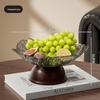 Transparente Obst- und Snack-Präsentationsplatte mit hohem Fuß: Modernes Licht-Luxus-Design für Wohnzimmer-Couchtische.