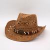 Straw Weave Sombrero Hat Hollow Out Western Cowboy Hats Bohemian Straw Hat for Outdoor Holiday