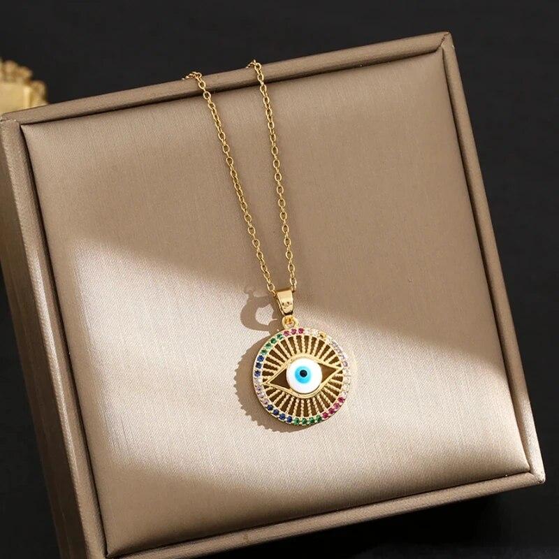 1 Stück Luxus Wind Teufelsauge Kupfer Anhänger Titanstahl Kette Vergoldete Halskette Modeaccessoires