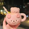Cartoon Bärenjunges Aufkleber Tasse mit Deckel Haushalt Keramik Frühstück Milch Haferflocken Tasse Niedlicher Bär Strohhalm Tasse Souvenir