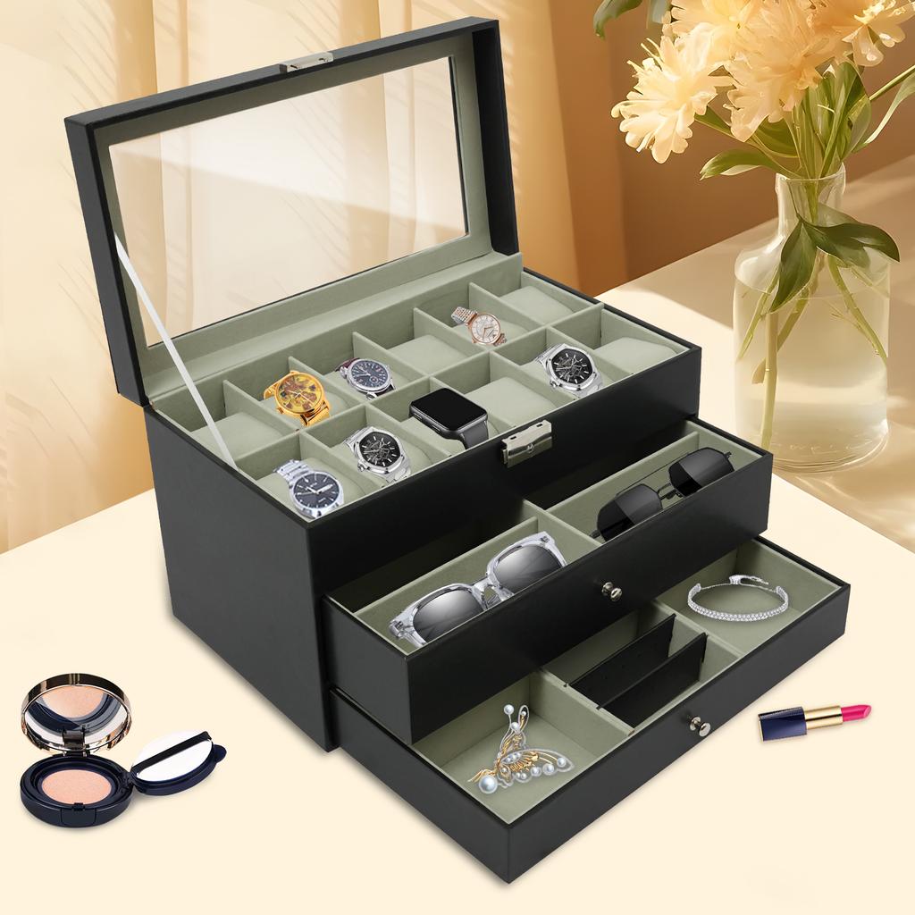 3-Tier Organizer Box for Jewelry, Watches, Glasses & Accessories,Compact Desktop Display Cabinet, Multi-Layer Holder, Home Decor