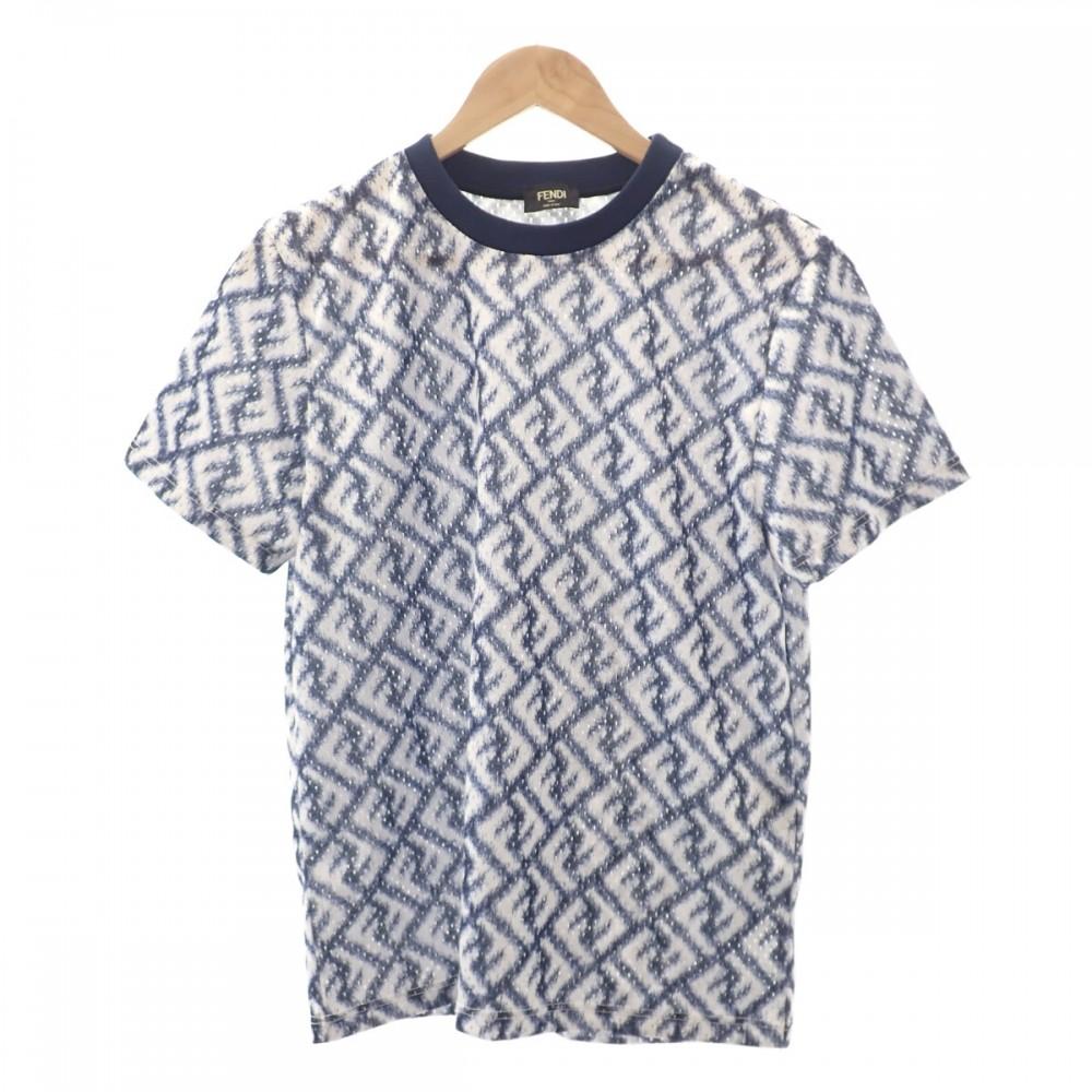 Produktionsmerkmale:Dies ist ein Herrenartikel von Fendi, das Technical Mesh T-Shirt. Es ist blau und weiß und verfügt über einen Allover-Print des diagonal gestalteten FF-Motivs.. Das technische Mesh-Material sorgt für gute Belüftung und macht es zu einem perfekten Artikel für den heißen Sommer.