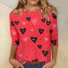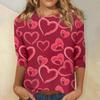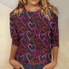 Damen Oberteile Dreiviertelarm Valentinstag Shirt Rundhals Lockeres Freizeitshirt