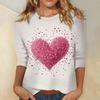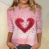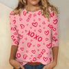 Damen Oberteile Dreiviertelarm Valentinstag Shirt Rundhals Lockeres Freizeitshirt