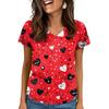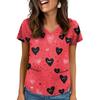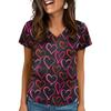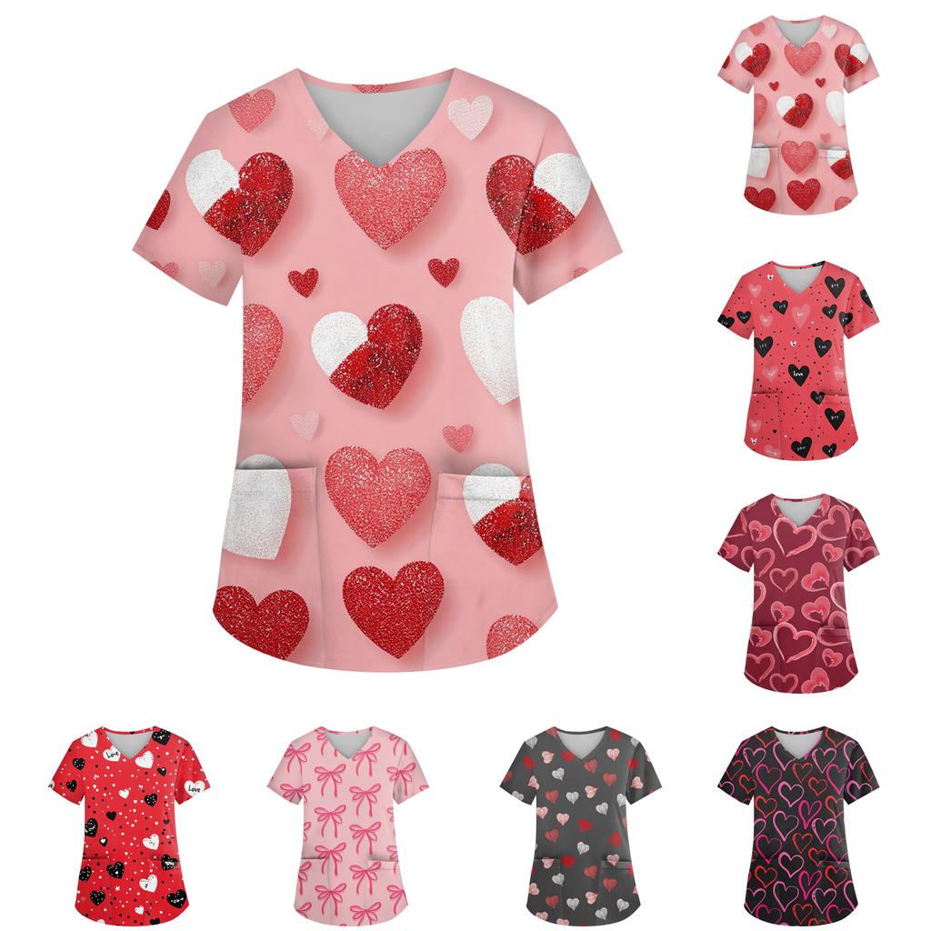 Damen V-Ausschnitt Valentinstag Bedrucktes Kurzarm-Top mit Taschen und Seitenschlitzen, geeignet für Pflegekräfte.