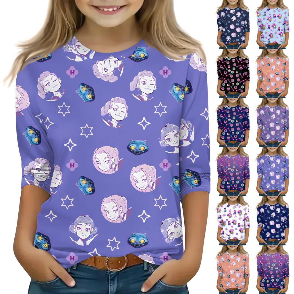 Druck-Tops für junge Mädchen 4-11 Jahre Rundhals 3/4-Ärmel T-Shirts Trendige Tops Outfit T-Shirts