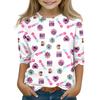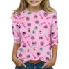 Druck-Tops für junge Mädchen 4-11 Jahre Rundhals 3/4-Ärmel T-Shirts Trendige Tops Outfit T-Shirts
