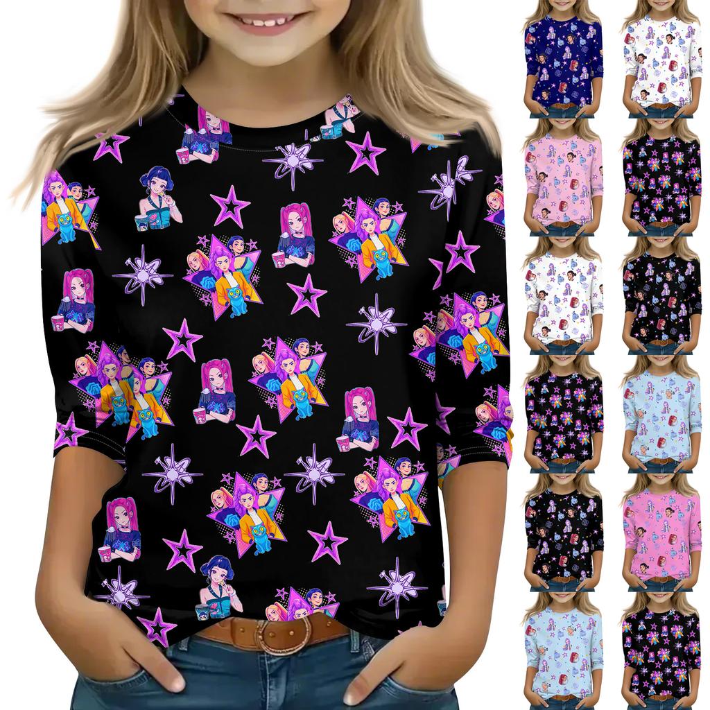 Druck-Tops für junge Mädchen 4-11 Jahre Rundhals 3/4-Ärmel T-Shirts Trendige Tops Outfit T-Shirts