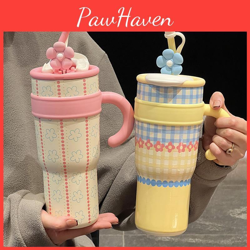 Isolierter Keramikbecher im koreanischen Stil mit Henkel für Reise- und Bürogebrauch