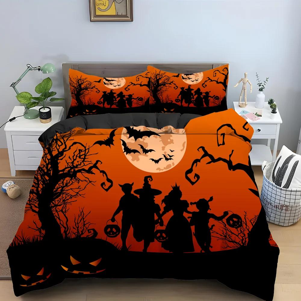 Halloween Horror Kürbis Königin König Bettbezug Nacht Hexe Bettwäsche Set Fledermaus Mond Steppdeckenbezug 2/3 Stück Polyester Bettdeckenbezug
