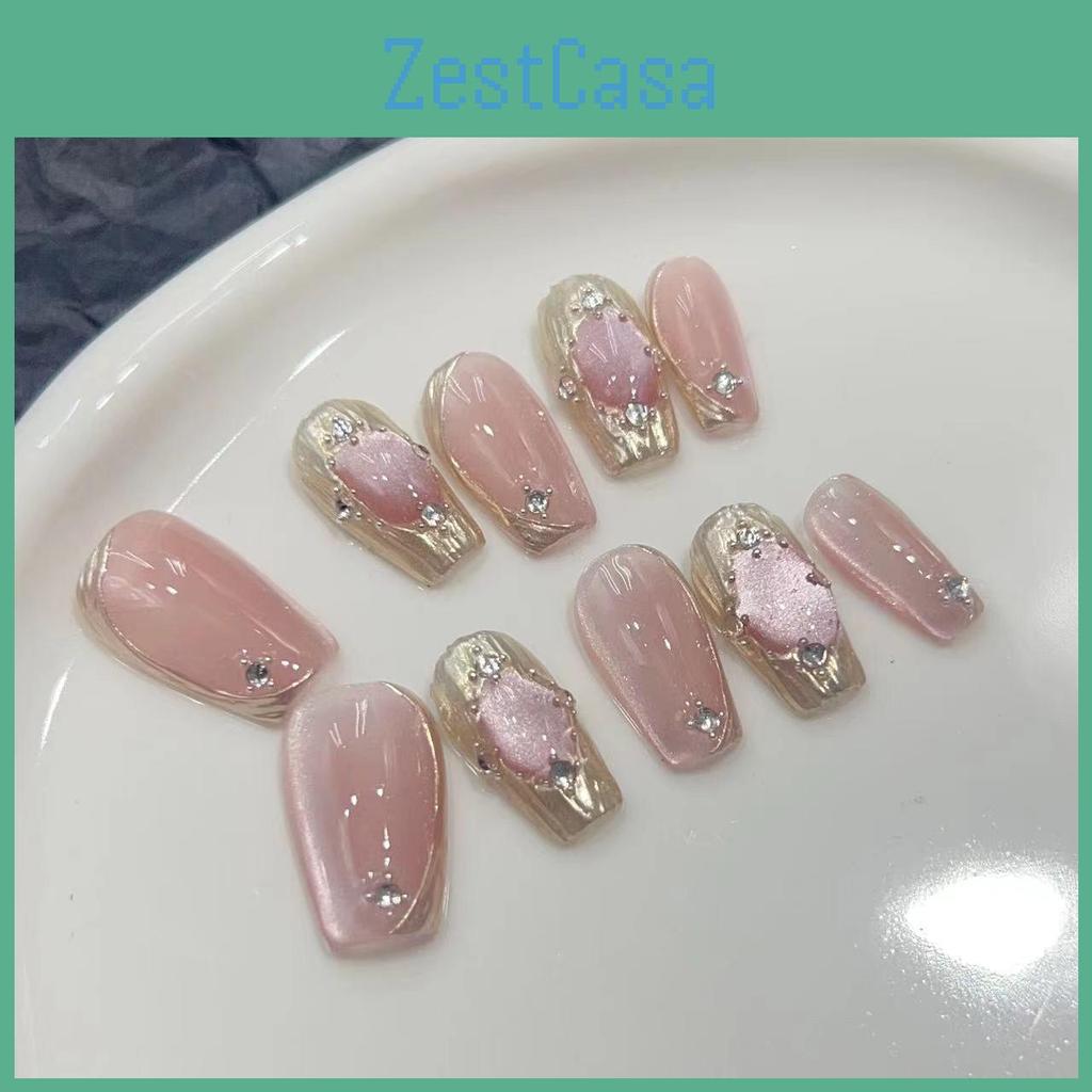 Handcrafted False Nails Pink Color Cat Eye Design 375 Goddess Girl Long T Xs