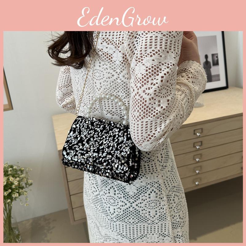 Elegant Black Sequin Evening Shoulder Bag Chic Chain Strap Perfect For Street Style