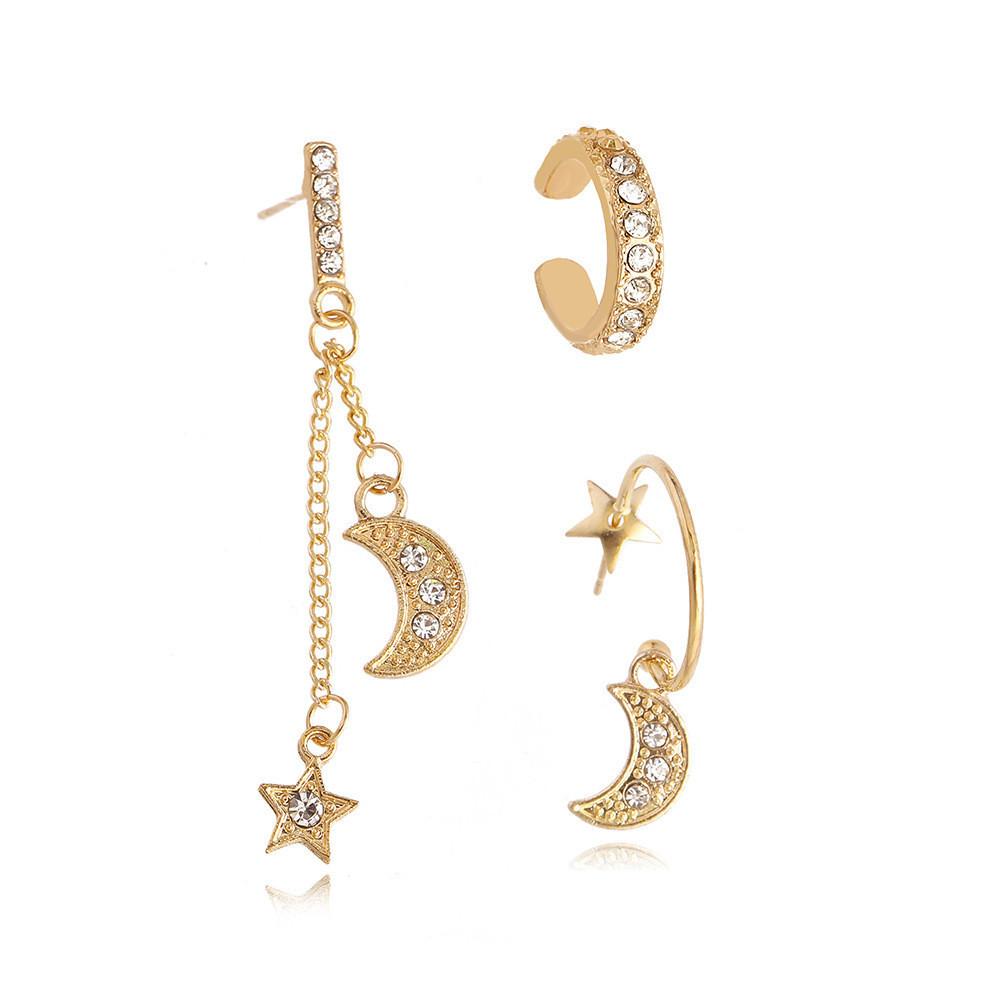 Elegantes Halbmond-Stern-Ohrring-Set Schicker Euro-Amerikanischer Modeschmuck Trendig