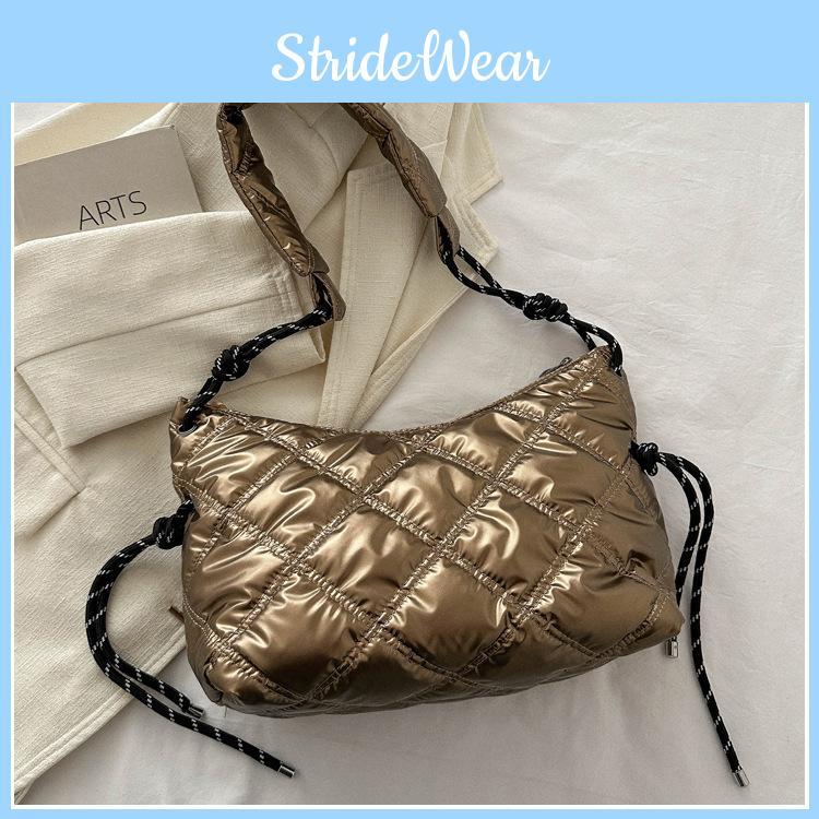 Trendige Damen-Schultertasche im Streetstyle 2024 Winter Neue Mode Glänzend Einfarbig Baumwolle Umhängetasche