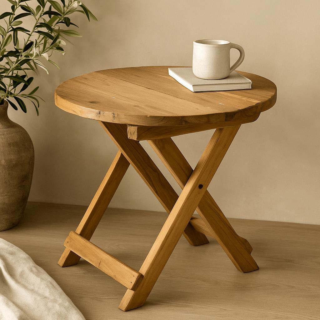 Round Folding Coffee Table 50cm Reclaimed Wood