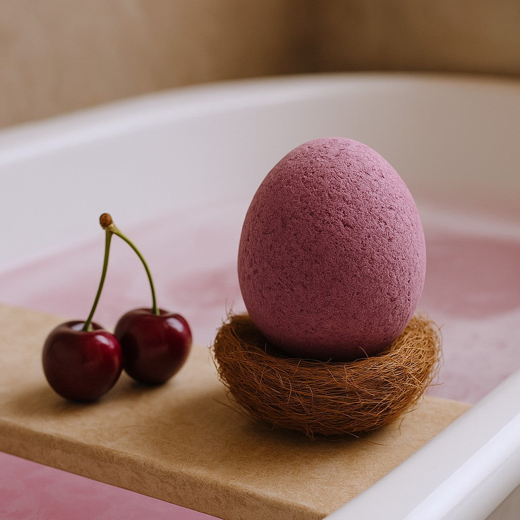 Drop one into warm water and listen to the quiet fizz as the tub blushes pink, unfurling in a gentle swirl. The air gathers tender cherry notes—bright, lightly sweet, and calming—while the skin-kind formula softens the water so your skin feels comfortable, supple, and lightly scented afterward. 🍒