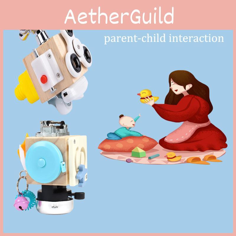 【7-in-1 kognitives Spielzeug】Fidget-Spielzeug für Kleinkinder von 1-3 Jahren, sensorisches Spielzeug für Autisten, auch geeignet für neugierige und autistische Kinder. Das hölzerne interaktive Spielzeug hat 6 Seiten.. Kleinkindspielzeug Aktivitätswürfel Enthält - Fingerspitzenschraube, Diebstahlsicheres Schloss, Schnappverschluss, Einwegschalter, Drehrad, Wasserhahn-Schalter, Drehschraube. Dieses Kinderspielzeug kann sensorisches Spielzeug bieten, um Ihr Kind von Elektronik fernzuhalten.. Förderung der kognitiven, aufmerksamen, lernbezogenen, visuellen, auditiven und taktilen Entwicklung Ihres Kindes.
