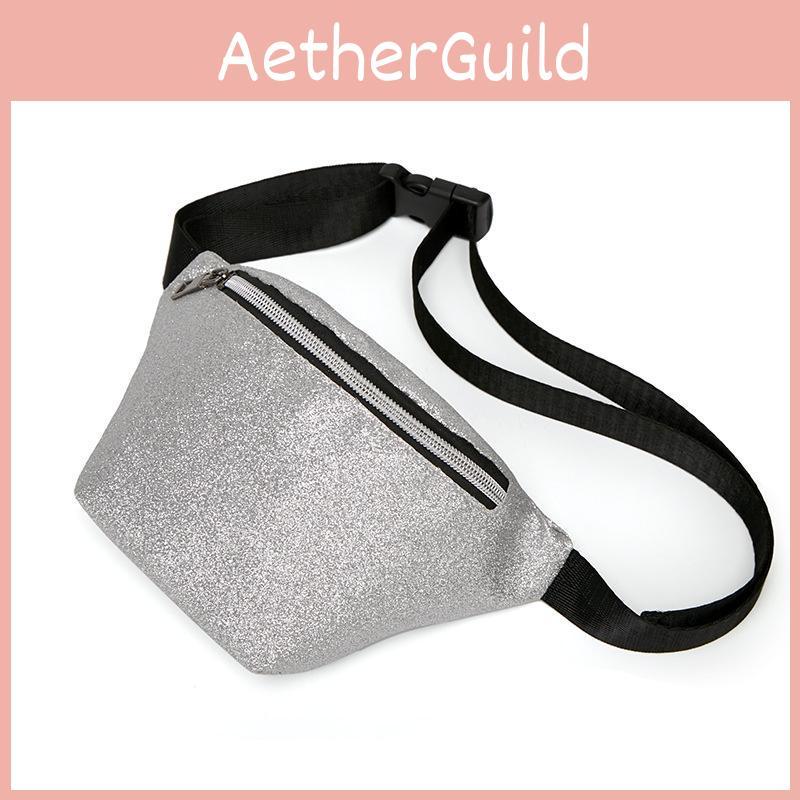 Modische einfarbige Brusttasche mit glänzenden Pailletten und weichem PU-Leder für Damen
