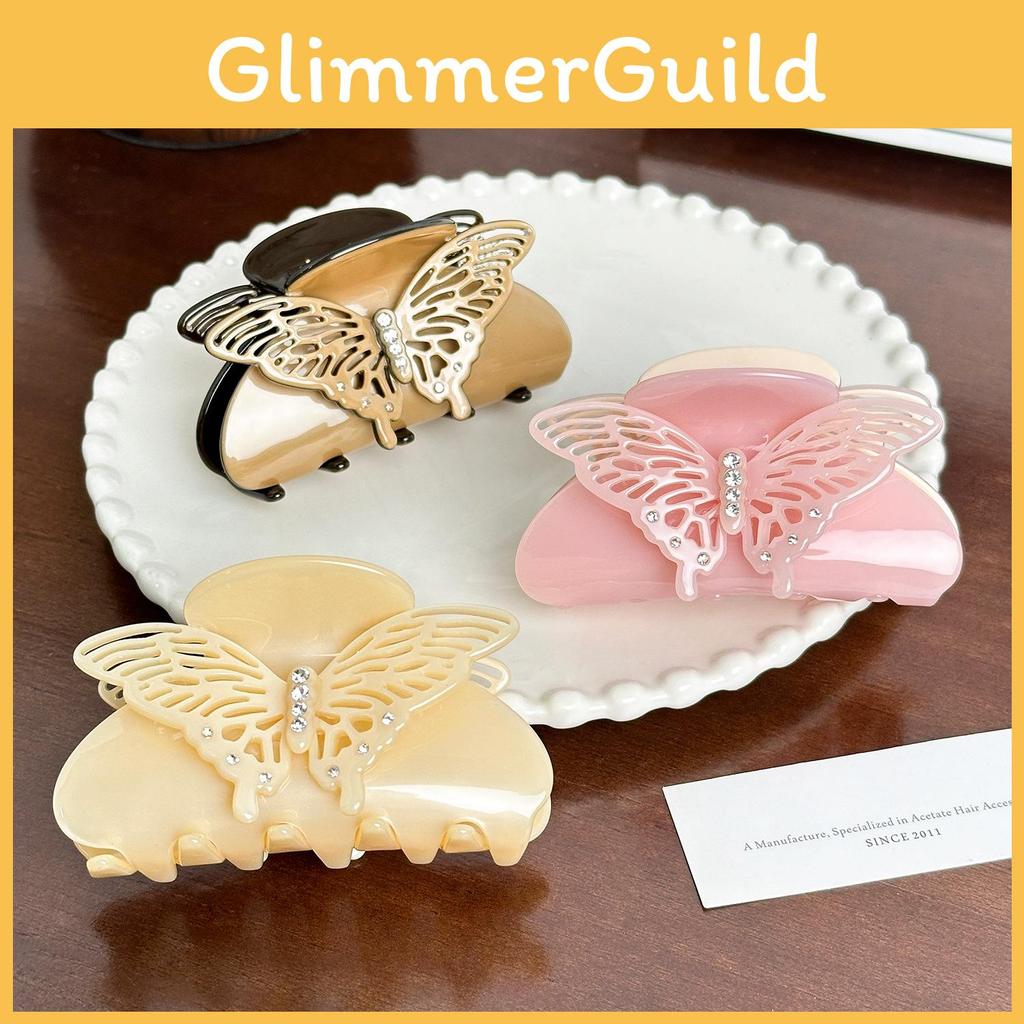 Elegante Acetat Schmetterlings Haarspange mit Strassdetails für stilvolle Hochsteckfrisuren