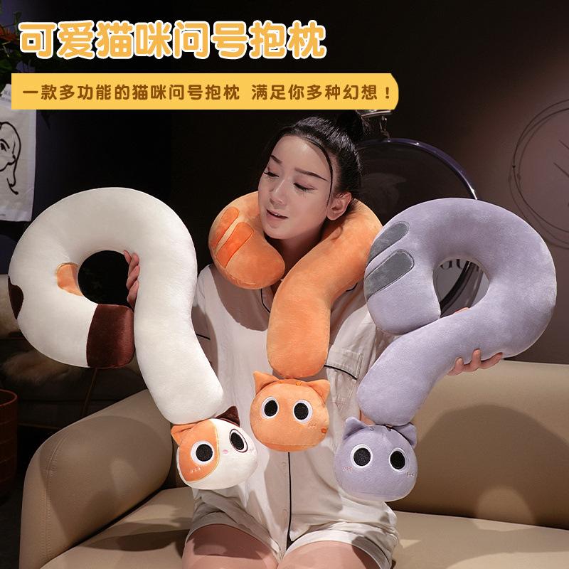 Cartoon Cat Question Mark Neck Pillow Throw Pillow Girls Office Sleeping U-Shaped Pillow Travel Nap Artifact Rag Doll