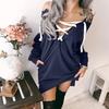 Women Sexy Lace Up Bandage Deep Off Shoulder Hoodies With Long Loose Pullover Sleeves
