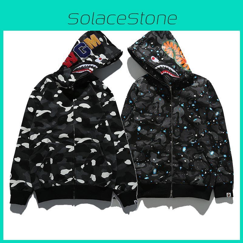 Bape Camouflage Hoodie mit Haikopf-Design Weiche Bequeme Full-Zip-Jacke