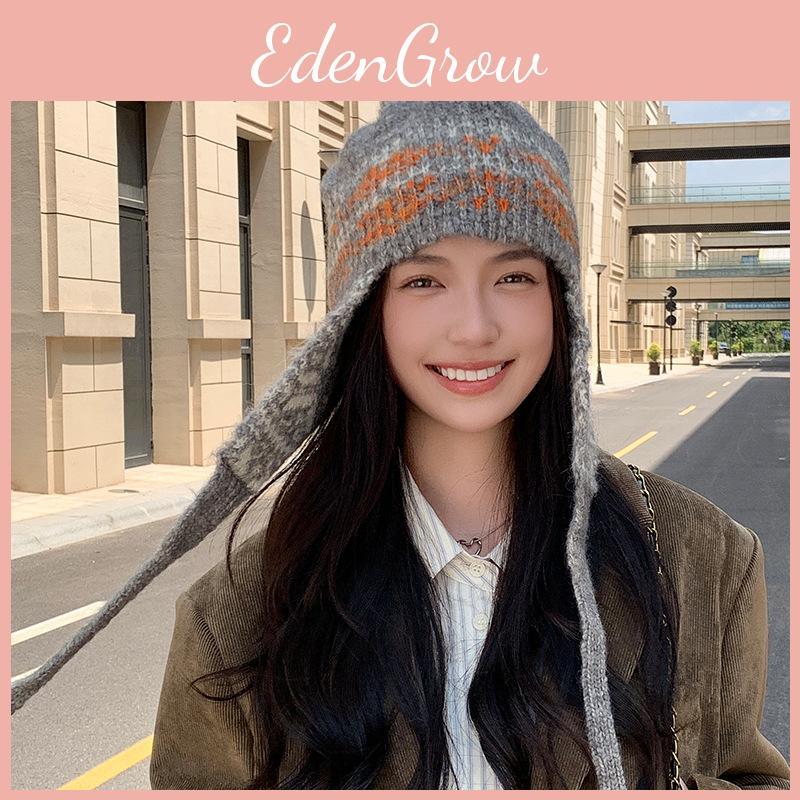 Blend Knitted Hat With Ear Flaps For Women Breathable Windproof Autumn Winter Outdoor Wear