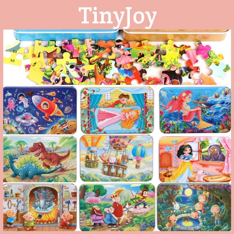 Hochwertiges 60-teiliges Holzpuzzle in Eisenbox Pädagogisches Spielzeug für Kinder