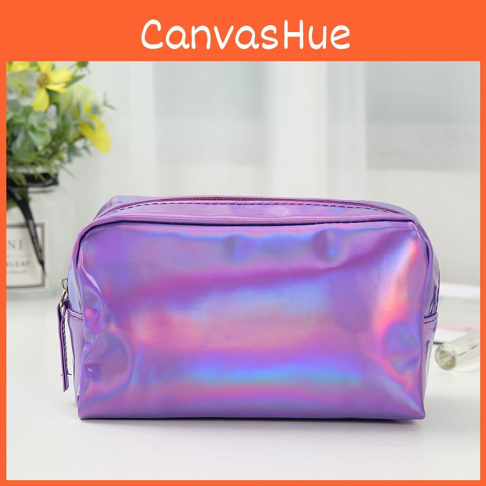 Stylish Laser Pu Cosmetic Pouch Portable Colorful Square Big Capacity Handheld Toiletry Organizer