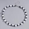 Trendige Schwarz-Weiß-Totenkopf-Halskette Perfekt für Halloween