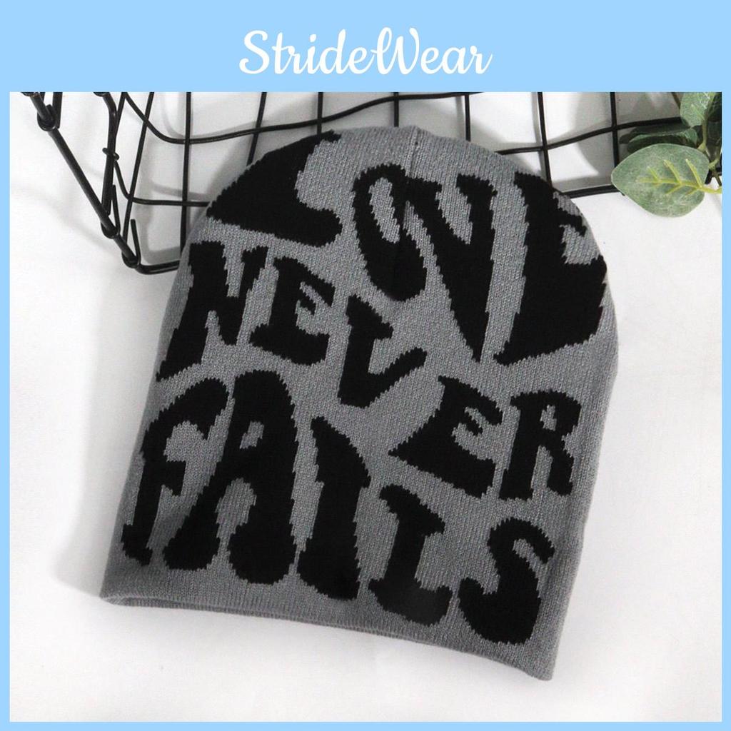 This knit cap features a rounded crown and a trendy, brimless design made fromacrylic yarn, delivering reliable warmth during fall outdoor and casual activities. Its stylish alphabet motifs enhance a streetwear-inspired look, suitable for both men and women, it offers a comfortable fit. Ideal for daily wear, it resists cold weather and can be easily wiped clean with a damp cloth.