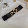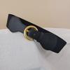 Minimalist Black Leather Look Waist Belt For Casual Dresses With Metal Closure